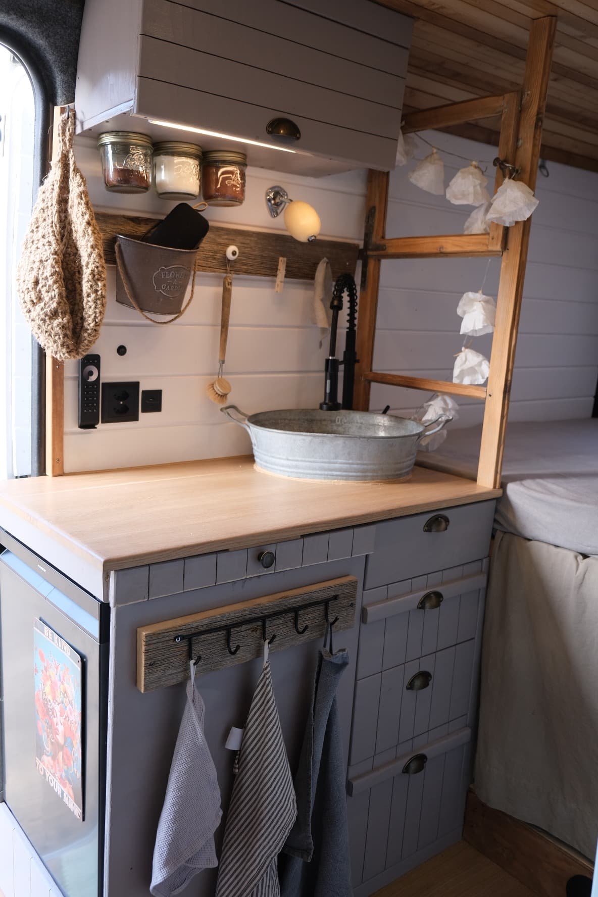 Aménagement partiel optimisé pour ce Fiat Ducato L2H2. Isolation complète, habillages soignés et installation électrique autonome pour un confort optimal en toutes saisons.